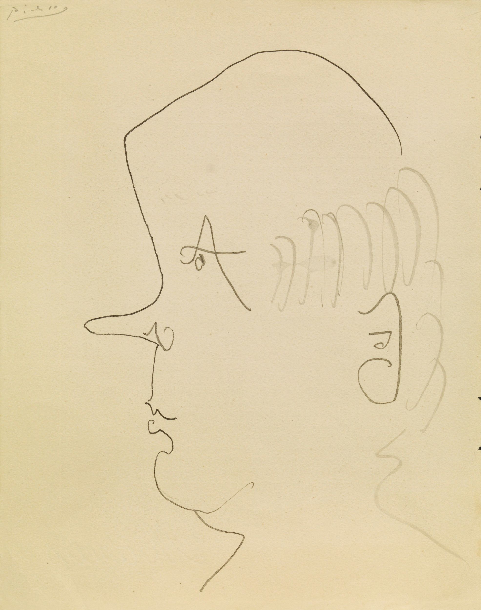 Firma in alto a sinistra: Picasso; al verso altri studi di testa di profilo.