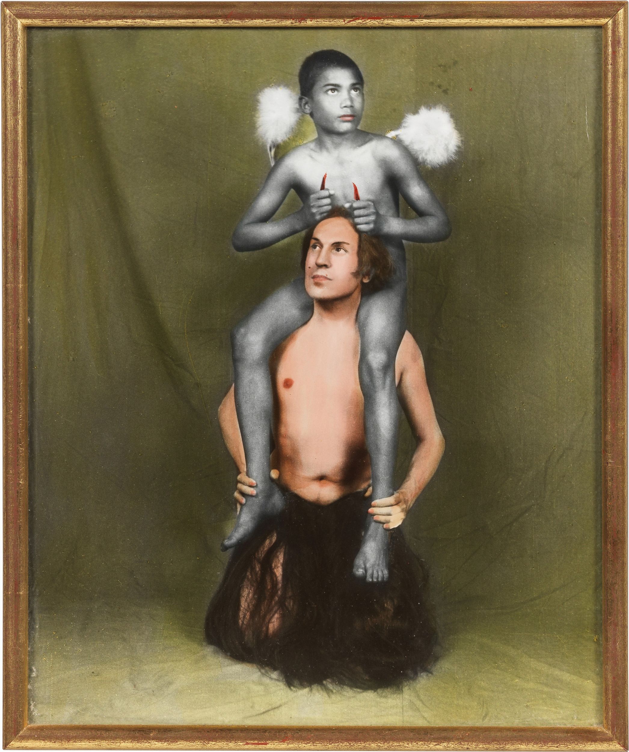 Fotografia acquerellata, cm. 31,5x26,3 Titolo e firma al verso: «FauNixo» / Ontani; dedica su un pannello di supporto: S'erra di Cassa'no / duchetto Paolo / compleanno / in Serraglio / cupidamente / Romamor / Ontani / 25 I 2000.