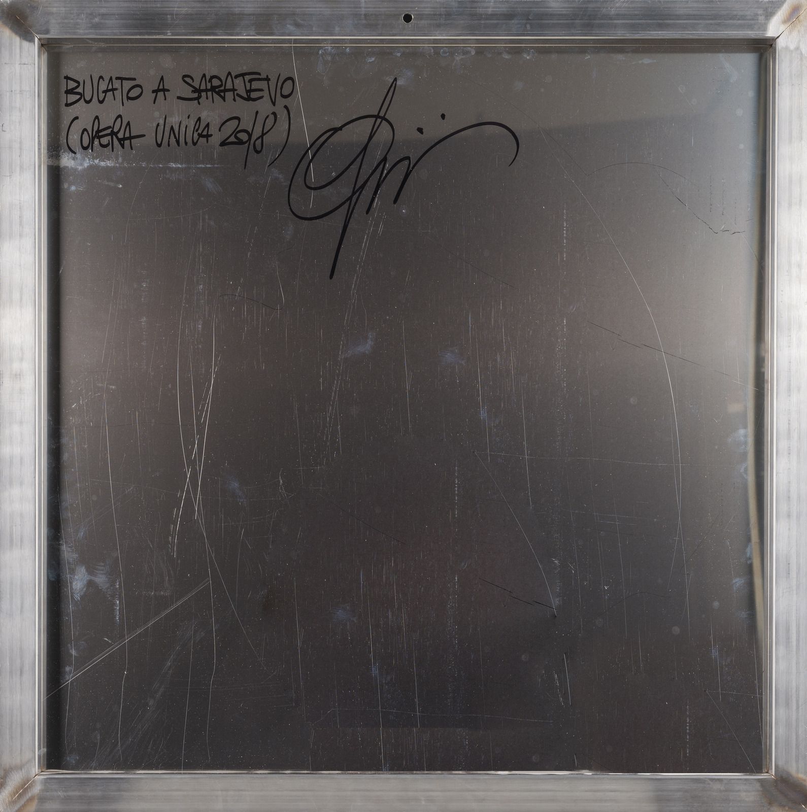 Al retro titolo, firma e anno. Autentica dell'artista su fotografia. Entro cassa in compensato originale.