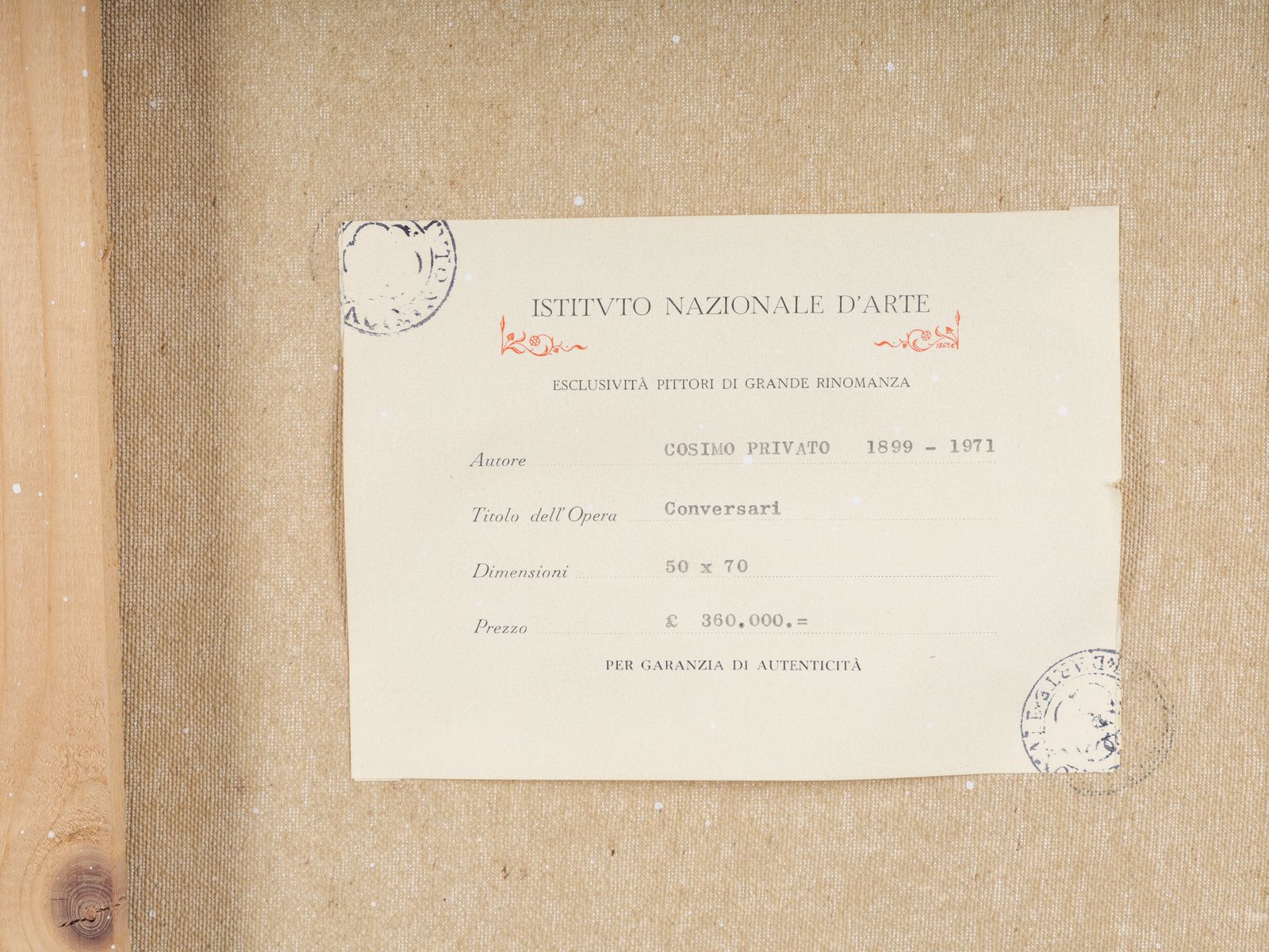 Firma in basso a destra. Al retro titolo, anno e cartiglio Istituto Nazionale d'Arte.