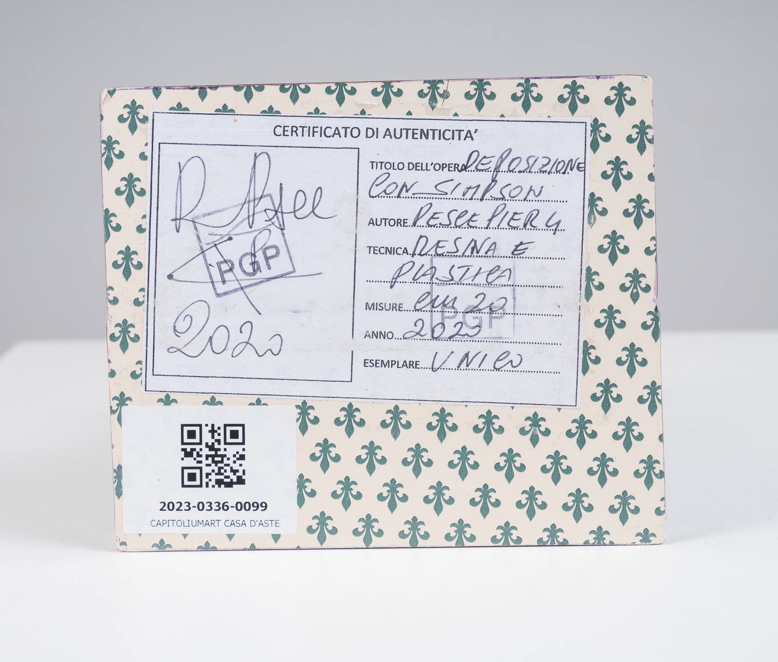 Esemplare unico. Cartiglio descrittivo con firma dell'artista sotto la base. Lievi difetti.