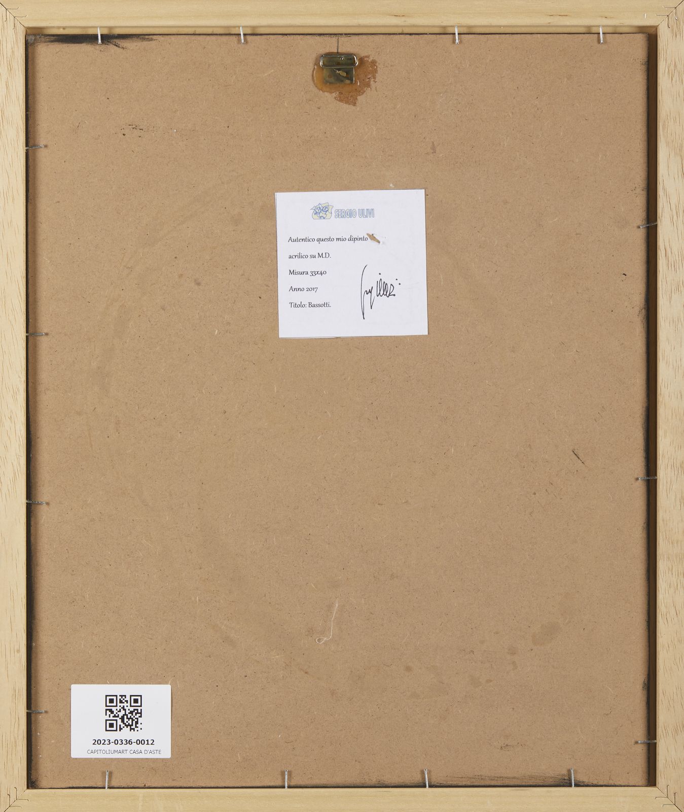 Firma in basso a sinistra. Al retro cartiglio descrittivo.
