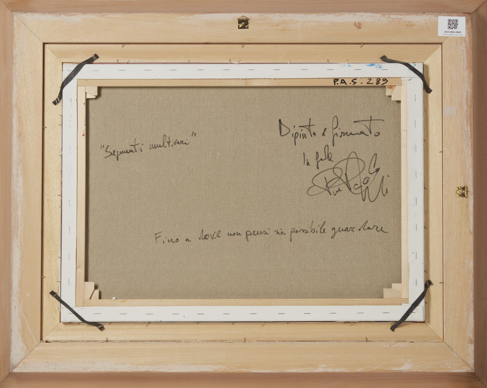 Firma in basso a destra. Al retro firma e titolo. Certificato di autenticità i Mercanti dell'arte riportante il relativo numero d'inventario.