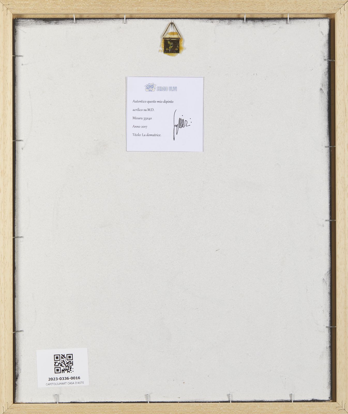 Firma in basso a destra. Al retro cartiglio descrittivo.