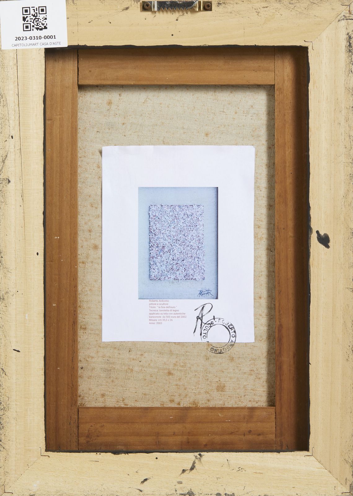 Firma e timbro dell'artista in basso a destra. Al retro cartiglio descrittivo. Autentica dell'artista su fotografia. Difetti.