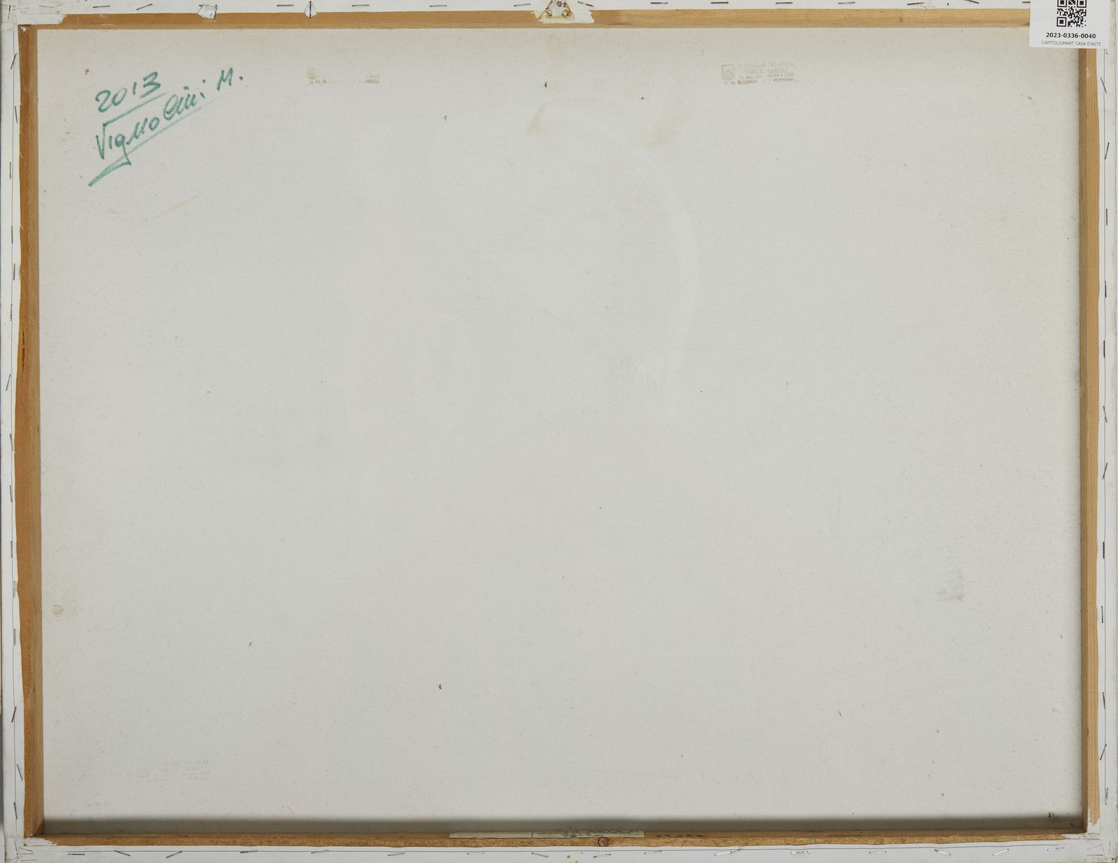 Firma in basso a destra. Al retro firma, anno e cartiglio descrittivo. Lievi difetti.