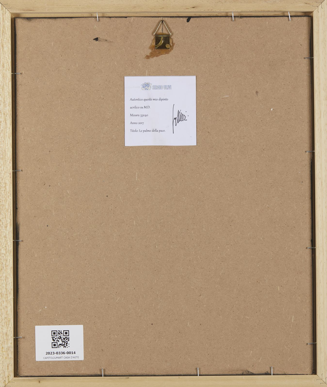 Firma in basso a sinistra. Al retro cartiglio descrittivo.