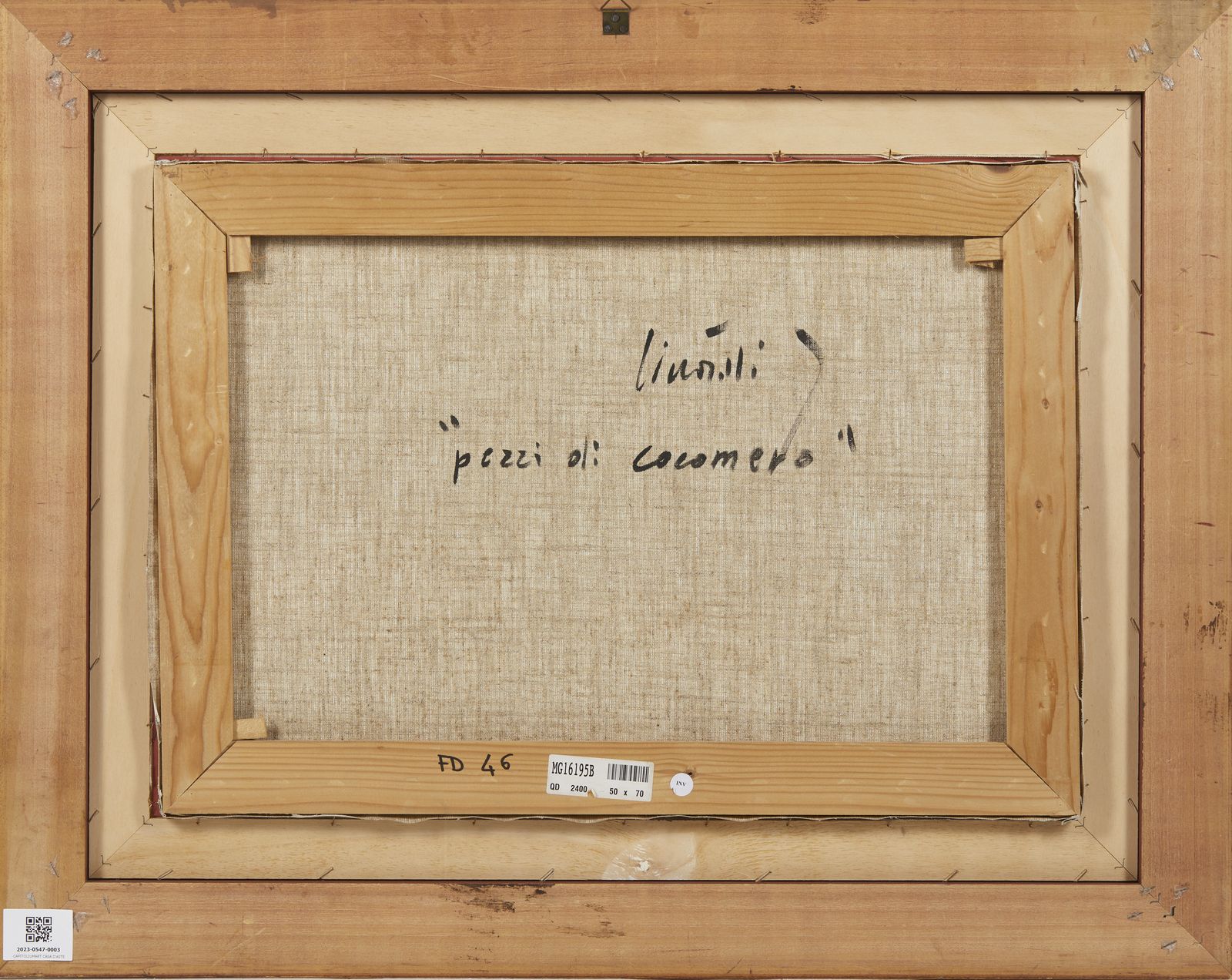 Firma in basso a destra. Al retro titolo e firma. Autentica dell'artista su fotografia. Certificato di provenienza Telemarket, Brescia.