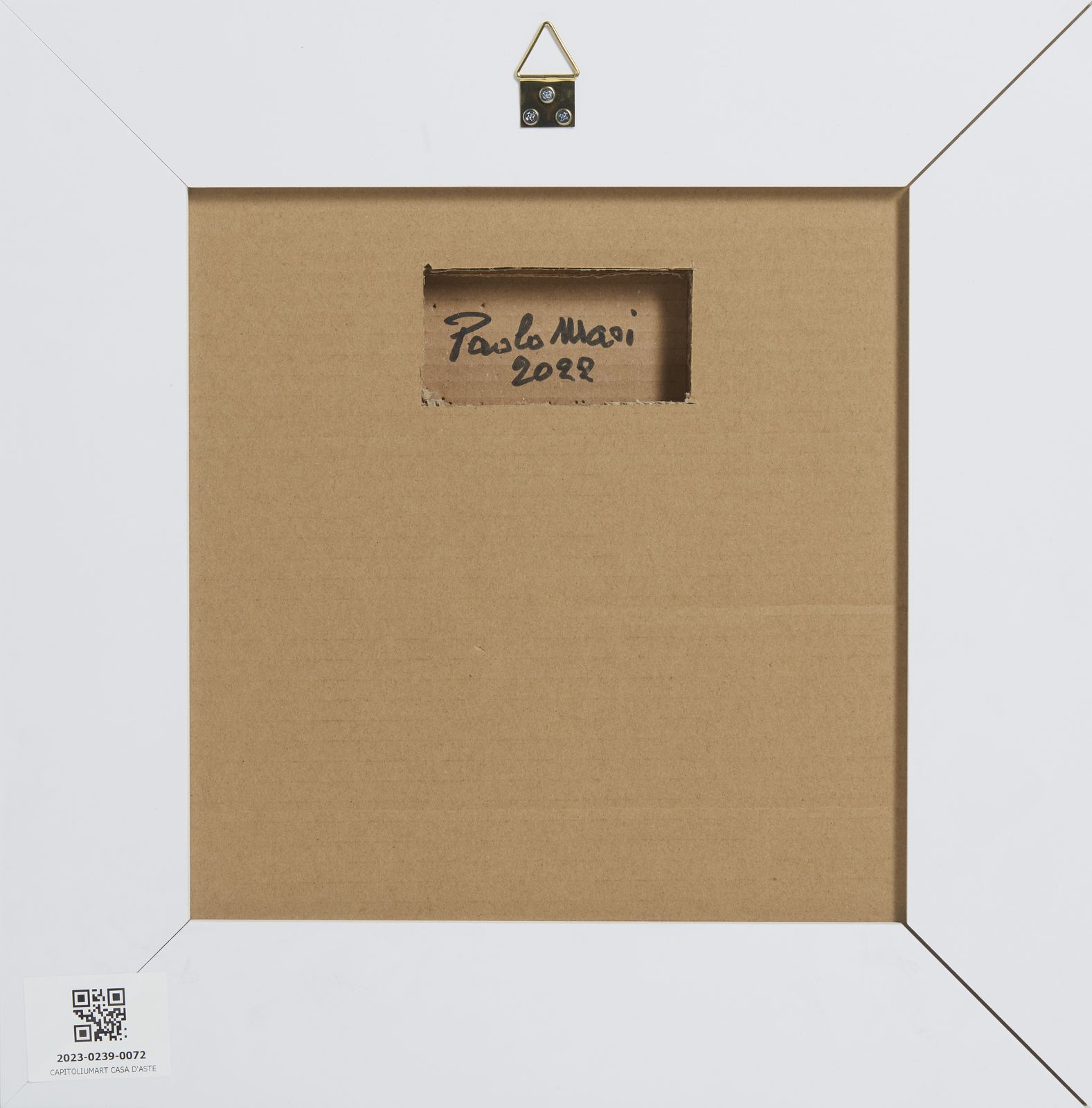 Al retro firma e anno a pennarello. Autentica dell'artista su fotografia. Entro teca in plexiglass.