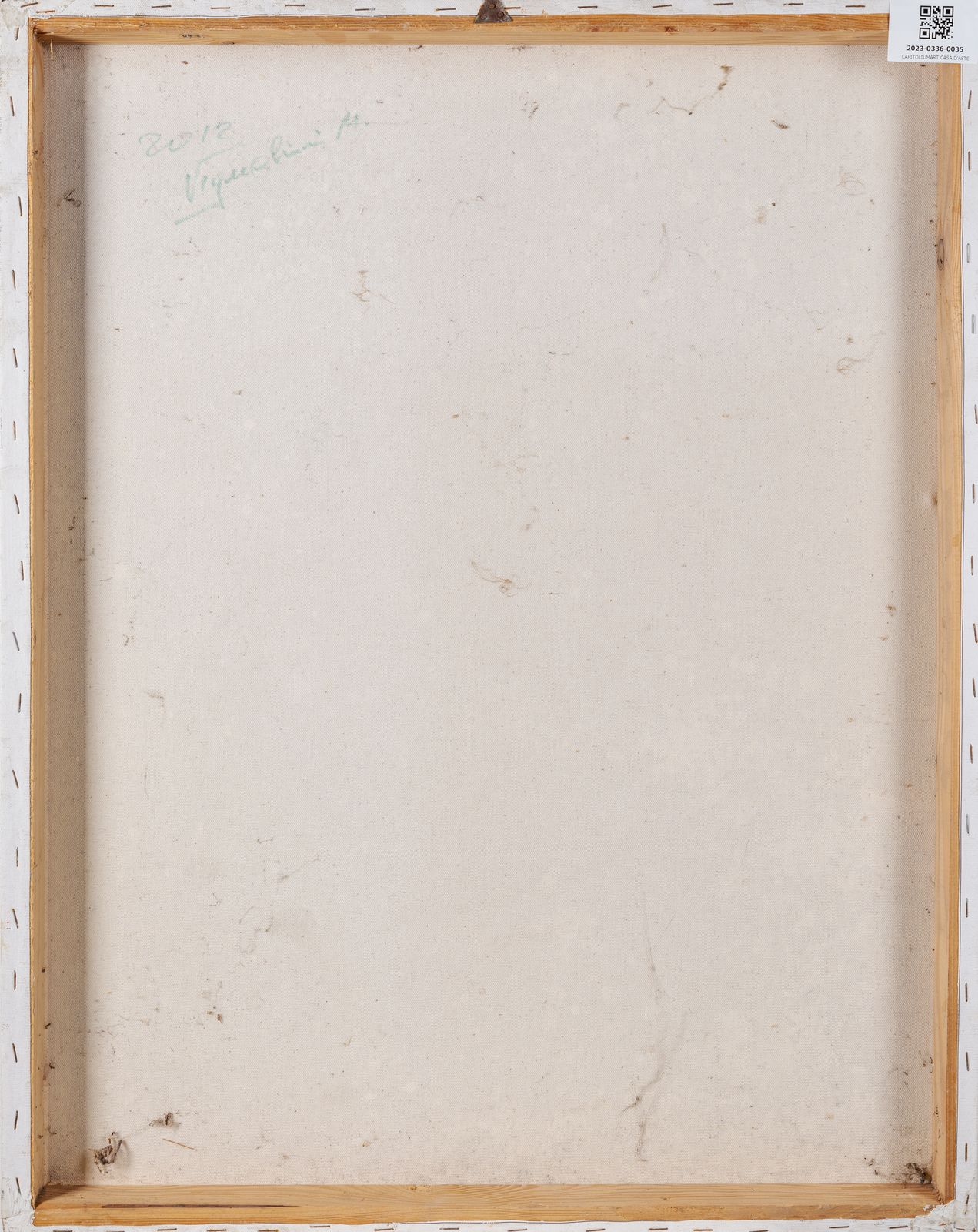 Firma in basso a destra. Al retro firma e anno. Lievi difetti.
