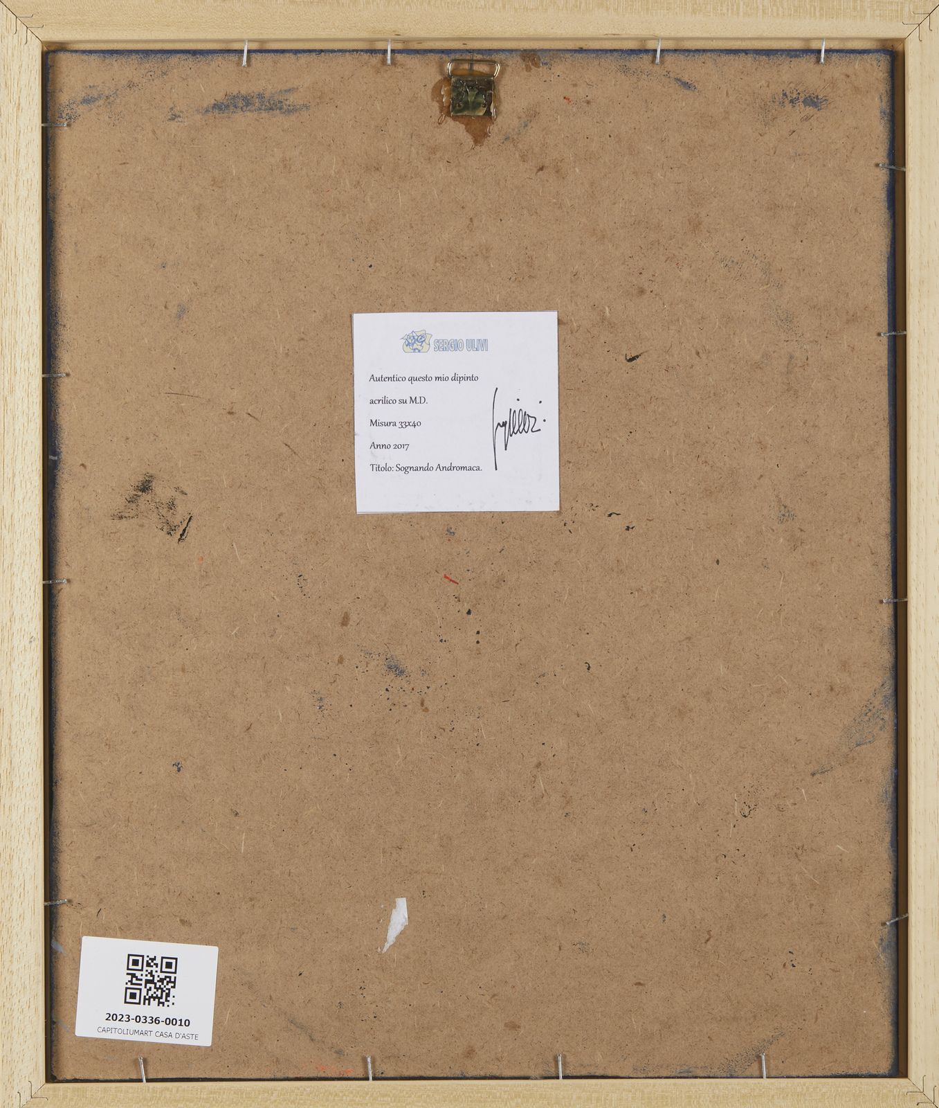 Firma in basso a destra. Al retro cartiglio descrittivo con firma dell'artista.