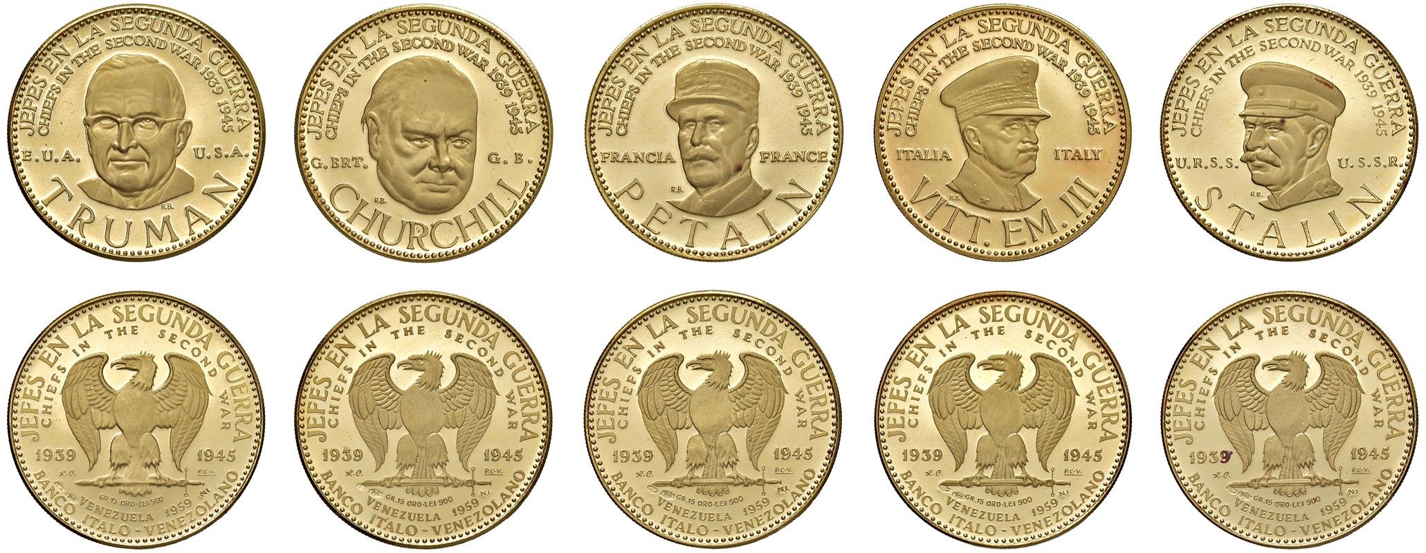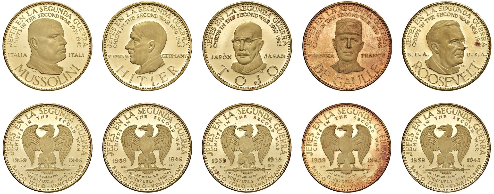 DIECI MEDAGLIE IN ORO 900 DEI CAPI DELLA II GUERRA MONDIALE. SERIE EMESSA DAL BANCO ITALO-VENEZUELANO