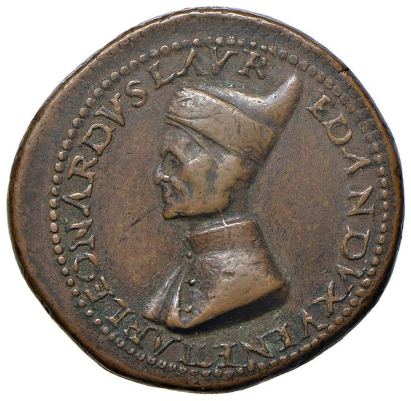 LEONARDO LOREDAN (1501-1521) LXXV DOGE. MEDAGLIA CELEBRATIVA FUSA A VENEZIA NEL 1521 OPUS VETTORE GAMBELLO DETTO CAMELIO (ATTR.) Ae mm. 28 LEONARDVS LAVR ED AN DVX VENETIAR Busto a s. con corno dogale R/ OPTIMI PRINCIPIS MEMORIA Scritta su tre righe Rif: Volt. 193 Molto rara. Fusione coeva. SPL Very rare. Coeval cast. EF