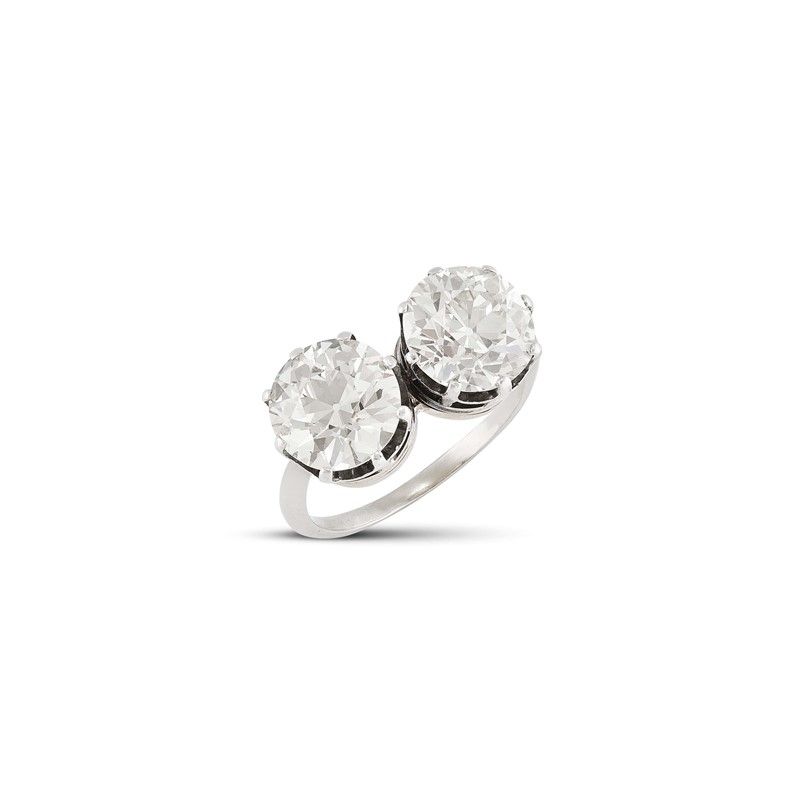 in oro bianco 18kt, impreziosito da due diamanti taglio vecchio di ct 2.70 circa e 2.80 circa, mis. 56, gr. 5