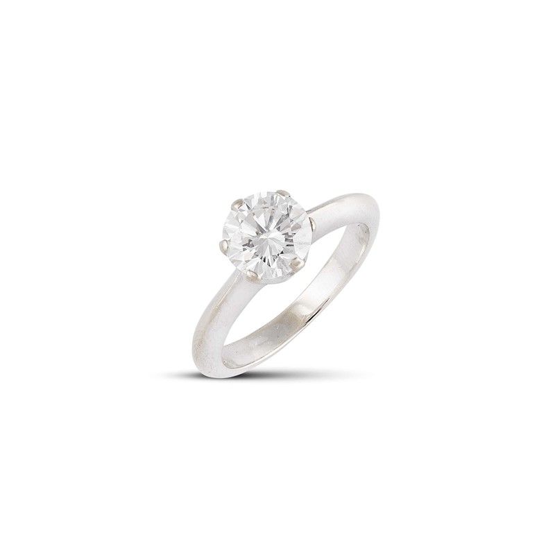 in oro bianco 18kt, con diamante taglio brillante di ct 1.10, colore G, purezza Vs1, punzone 750, mis. 47, gr. 3. Corredato di certificato IGI Anversa del 29/07/2015 attestante le caratteristiche.