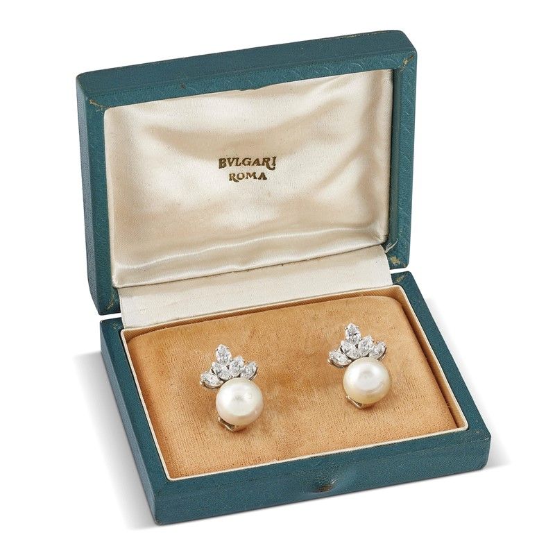 BULGARI PAIO DI ORECCHINI CON PERLE NATURALI E DIAMANTI