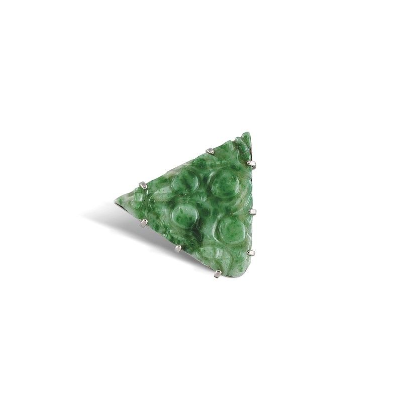 ENGRAVED JADEITE CLIP IN 18KT WHITE GOLD