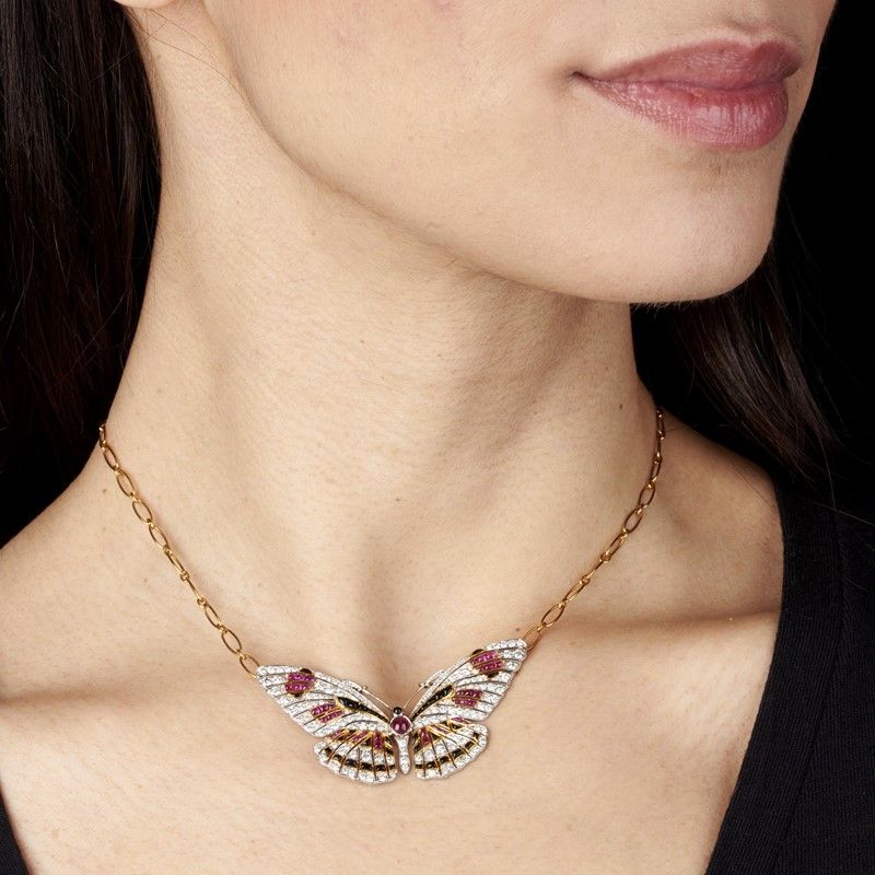 BUTTERFLY SHAPED NECKLACE IN 18KT YELLOW GOLD AND PLATINUM