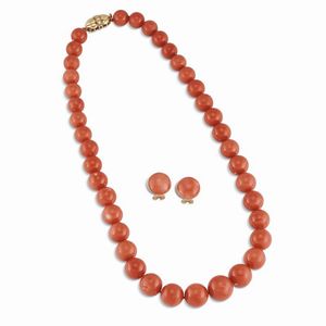 DEMI PARURE IN CORALLO composta da una collana ad un filo di boules in corallo digradanti di mm 17-12 circa, fermatura [..]