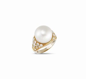 ANELLO CON PERLA SOUTH SEA E DIAMANTI in oro giallo e bianco 18kt, impreziosito sulla sommità da una perla [..]