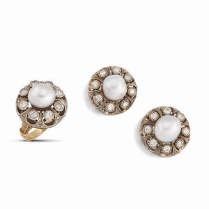 DEMI PARURE FLOREALE CON PERLE E DIAMANTI in oro bianco e giallo 18kt, composta da un anello con al centro una [..]