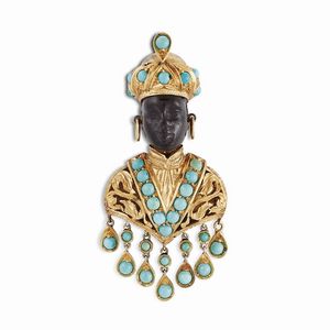NARDI SPILLA MORETTO busto e turbante in oro giallo 18kt traforati e cesellati, con volto in ebano, impreziosita [..]