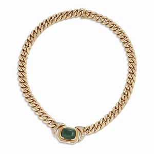 COLLANA GROUMETTE CON TORMALINA E DIAMANTI in oro giallo 18kt, realizzata a maglia groumette, con elemento centrale [..]