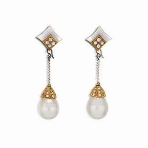 PAIO DI ORECCHINI CON PERLE SOUTH SEA E DIAMANTI in oro bianco 18kt, impreziositi da due perle south sea di mm [..]