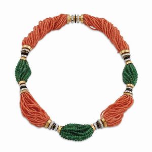 SCAVIA COLLANA DI CORALLI ROSA E SMERALDI in oro giallo e bianco 18kt, realizzata a torchon, composta da fili [..]