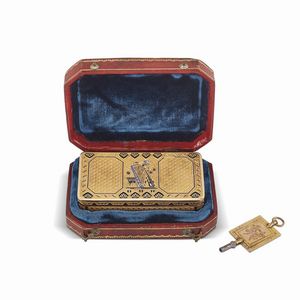 SCATOLA MUSICALE CON CARILLON in oro giallo, di forma rettangolare con angoli arrotondati, decorata lungo tutto [..]