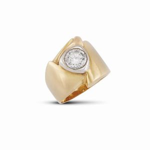 ANELLO CON DIAMANTE in oro giallo e bianco 18kt, con al centro un diamante taglio brillante (smontato) di ct 1.02, [..]