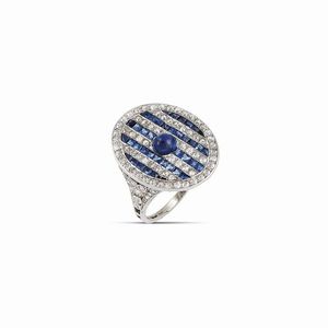 ANELLO A SCUDO CON ZAFFIRI E DIAMANTI
