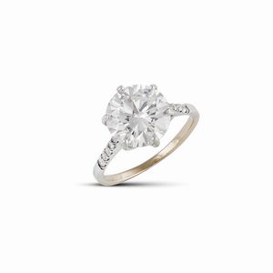 ANELLO CON DIAMANTI in oro bianco 18kt, con al centro un diamante taglio brillante di ct 3.55, colore G, purezza [..]