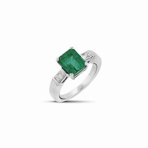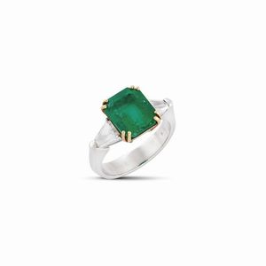 ANELLO CON SMERALDO COLOMBIANO E DIAMANTI in platino e oro giallo 18kt, impreziosito al centro da uno smeraldo [..]