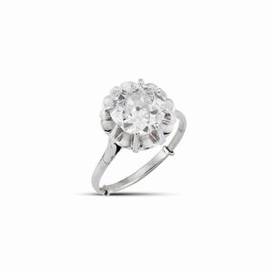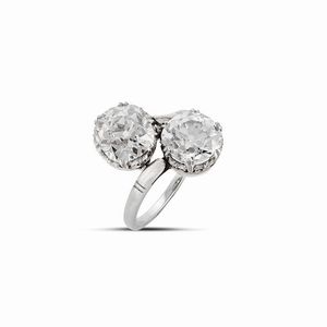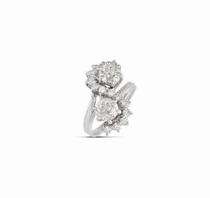 ANELLO CONTRARIE CON DIAMANTI in oro bianco 18kt, con agli apici due diamanti taglio antico per ct 1.70 circa, [..]