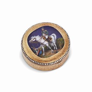 ANELLO CON GRANDE AMETISTA E DIAMANTI in oro giallo e bianco 18kt, fascia dal design geometrico, sormontata da [..]