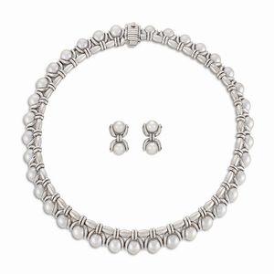 ANELLO CON PERLA E DIAMANTI in oro bianco 18kt, impreziosito da una perla di mm 10 circa affiancata da quattro [..]