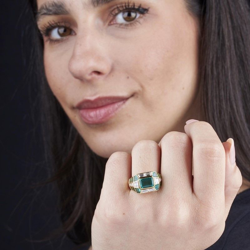 MARIO FONTANA EMERALD AND DIAMOND RING IN 18KT YELLOW GOLD