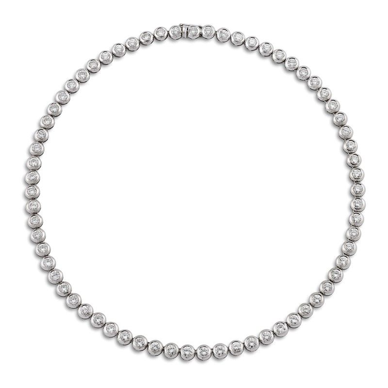 in oro bianco 18kt, composta da una serie di diamanti taglio brillante per ct 15 circa, firmata "Massoni", lungh. cm 40,5, gr. 39