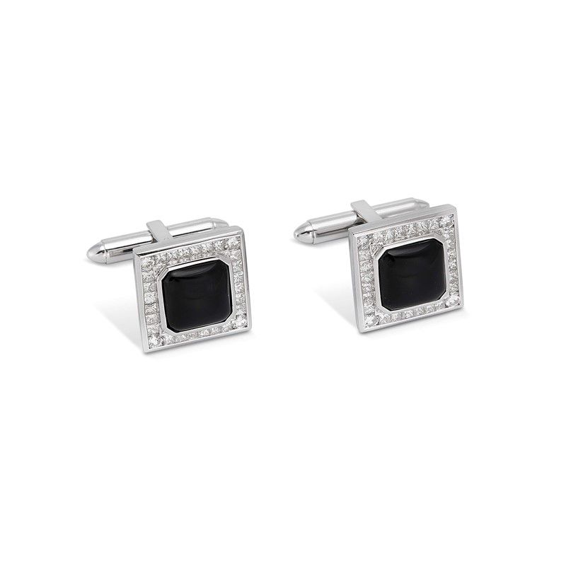 ONYX AND DIAMOND CUFFLINKS IN 18KT WHITE GOLD