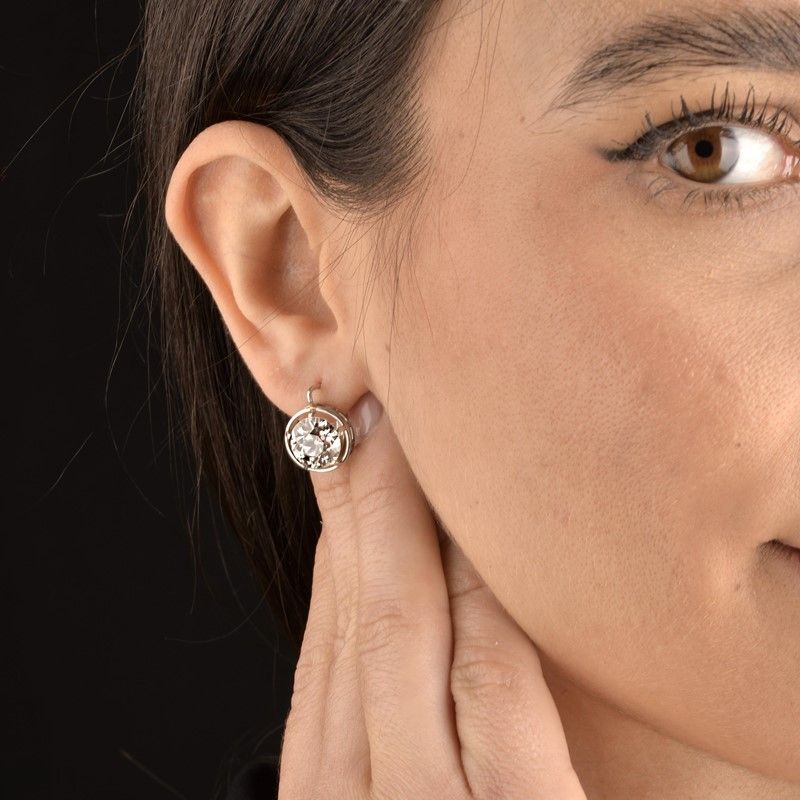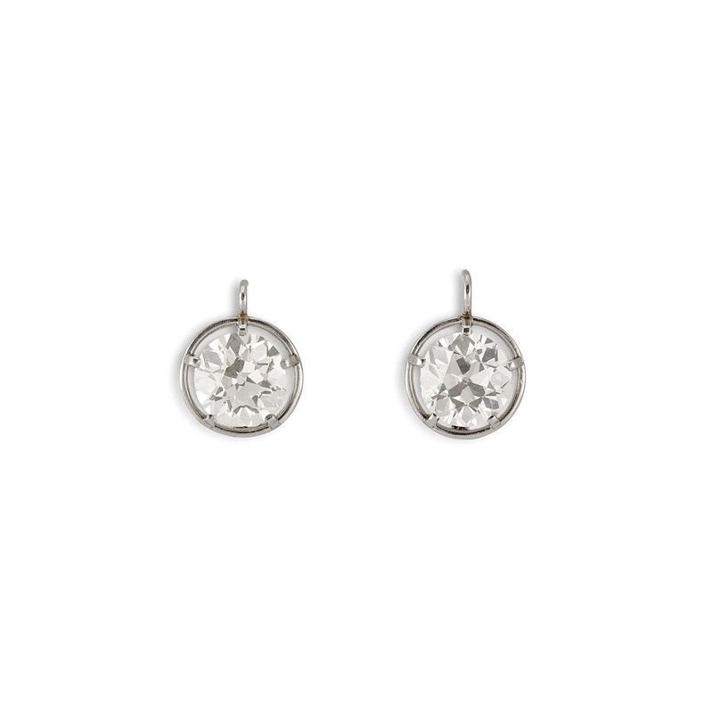 PAIO DI ORECCHINI CON DIAMANTI in platino, un diamante taglio vecchio di ct 3.10, colore K/L, purezza SI, secondo diamante taglio vecchio di ct 3.20, colore M/N, purezza Vs, chiusura a monachella, gr. 5 complessivi. Corredati di certificato IGN del 26/04/2023 attestante le caratteristiche.