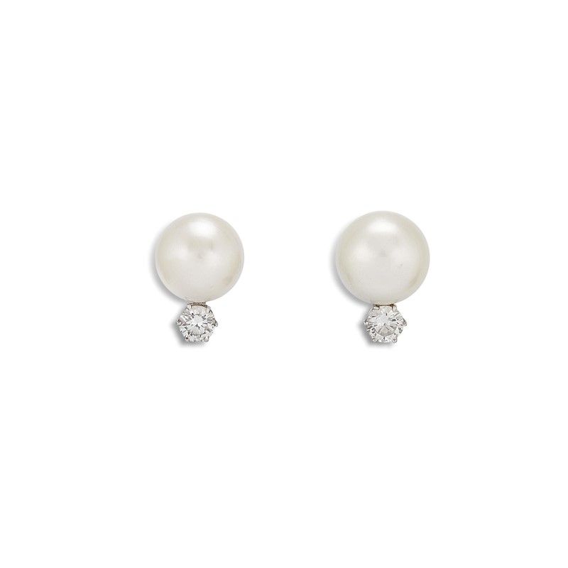 SOUTH SEA PEARL AND DIAMOND EARRINGS IN 18KT WHITE GOLD
