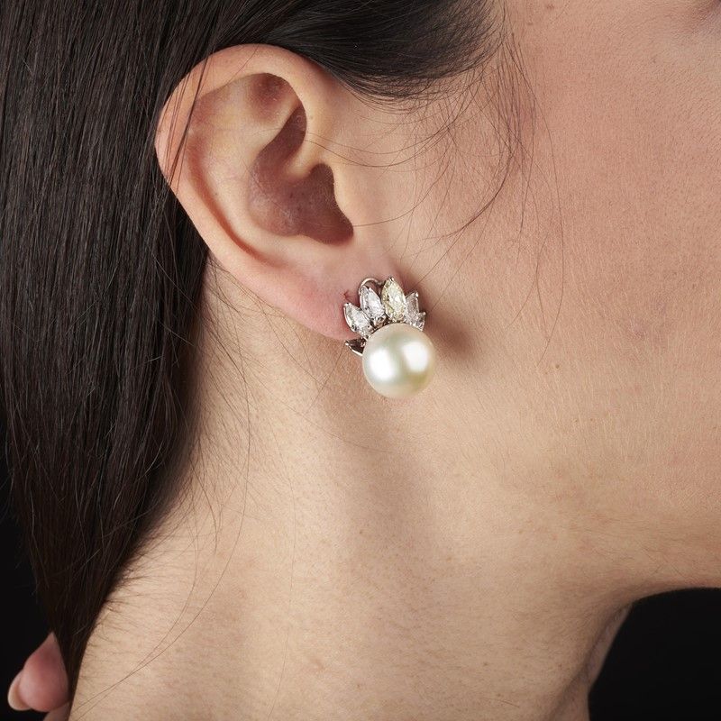 SOUTH SEA PEARL AND DIAMOND EARRINGS IN 18KT WHITE GOLD