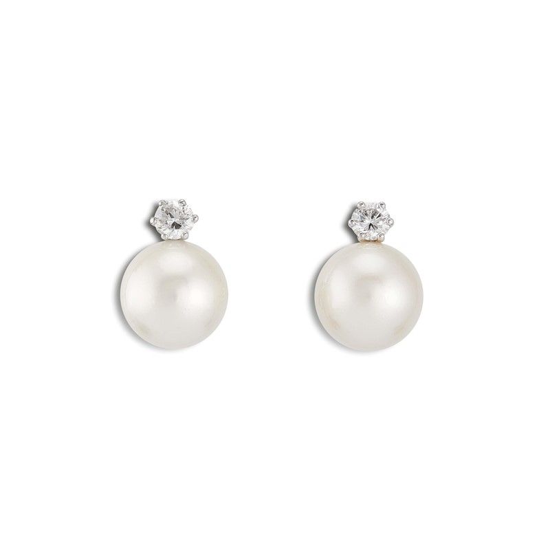 SOUTH SEA PEARL AND DIAMOND EARRINGS IN 18KT WHITE GOLD