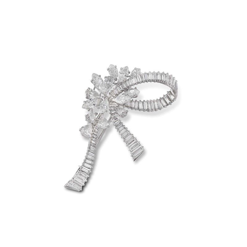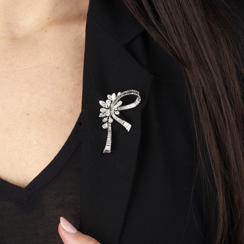 DIAMOND RIBBON BROOCH IN 18KT WHITE GOLD
