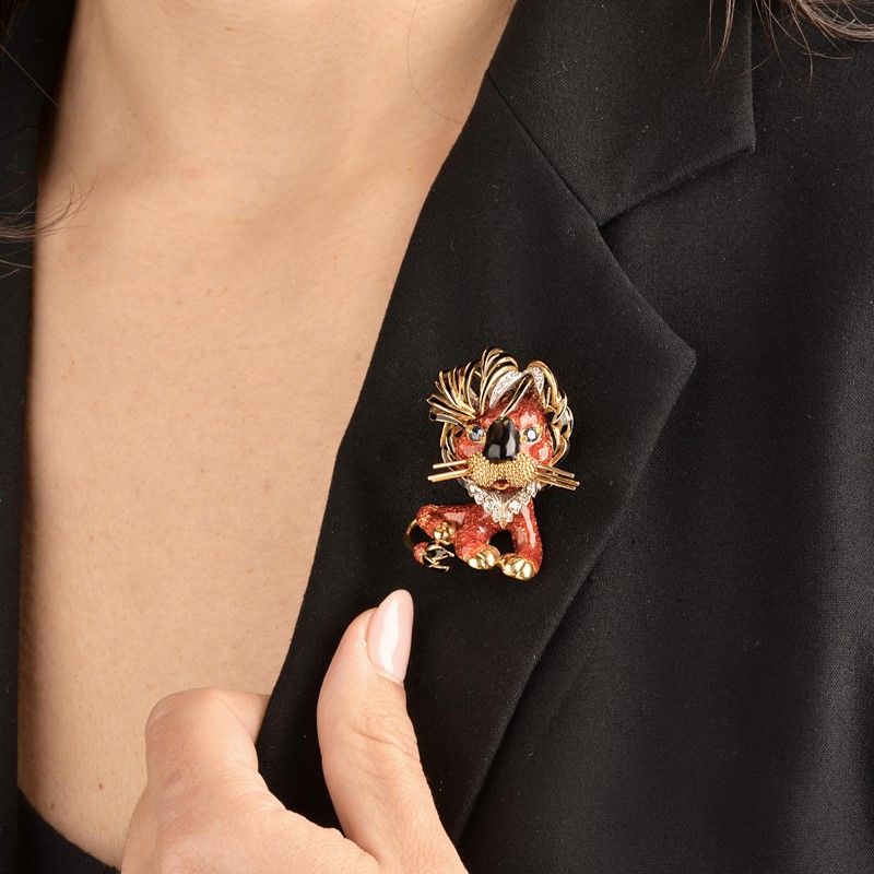 LION-SHAPED BROCH IN 18KT TWO TONE GOLD