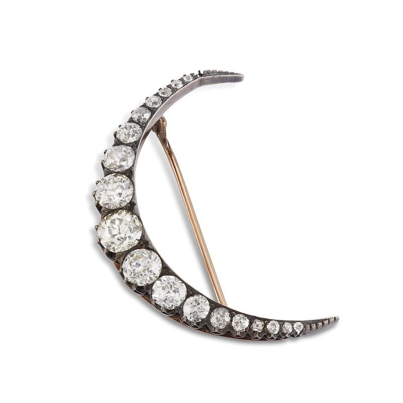 HALMOON-SHAPED DIAMOND BROOCH IN GOLD AND SILVER