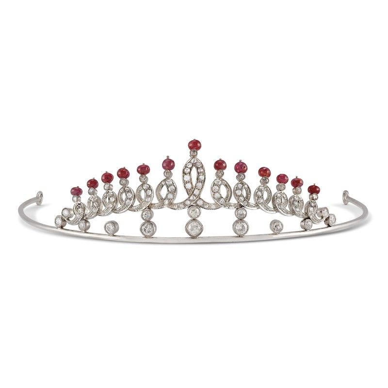 RUBY AND DIAMOND TIARA IN SILVER, WHITE GOLD AND PLATINUM