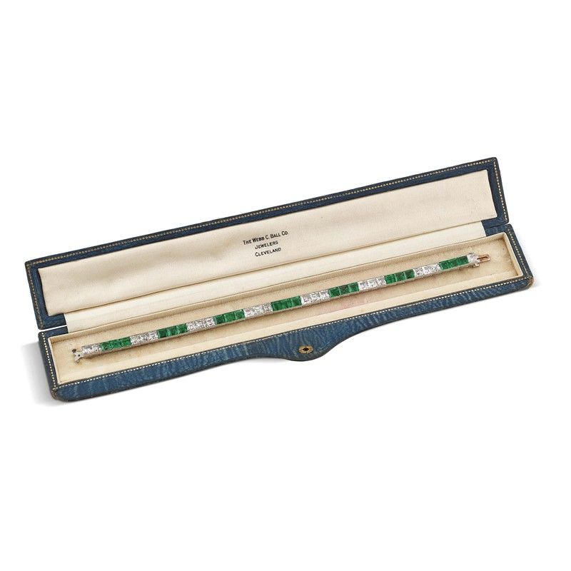 TIFFANY & CO. COLOMBIAN EMERALD AND DIAMOND BRACELET IN PLATINUM