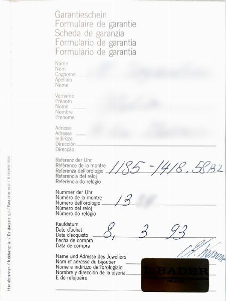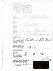 cassa in oro giallo 18kt, fondello a pressione, lunetta a scalino in oro giallo 18kt, corona marcata, quadrante bianco, grafica nera, numeri romani applicati, datario a ore sei, contatore dei secondi a ore sei, contatore dei minuti a ore tre, contatore delle ore alle nove, movimento a carica automatica cal 1185, bracciale a maglie in oro giallo 18kt, lungh. interna cm 20, chiusura deployant in oro giallo 18kt, vetro minerale, gr. 150. Diam. mm 34. Corredato di scatola e garanzia.